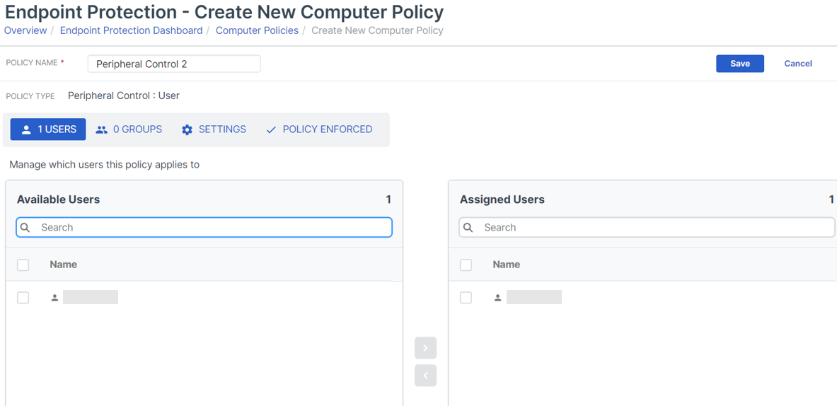 次に、ポリシーを適用するユーザーを選択し、「割り当て済みユーザー」リストに移動します。