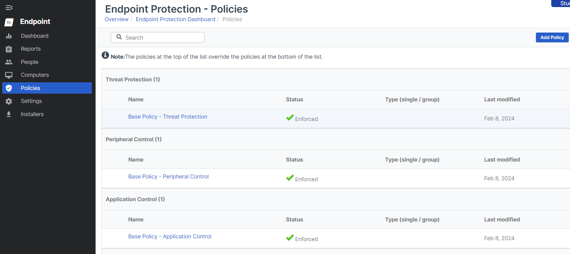 Sophos Central は、ソフォスのソフトウェアをインストールしたデバイスすべてに、自動的にデフォルトポリシーを適用します。