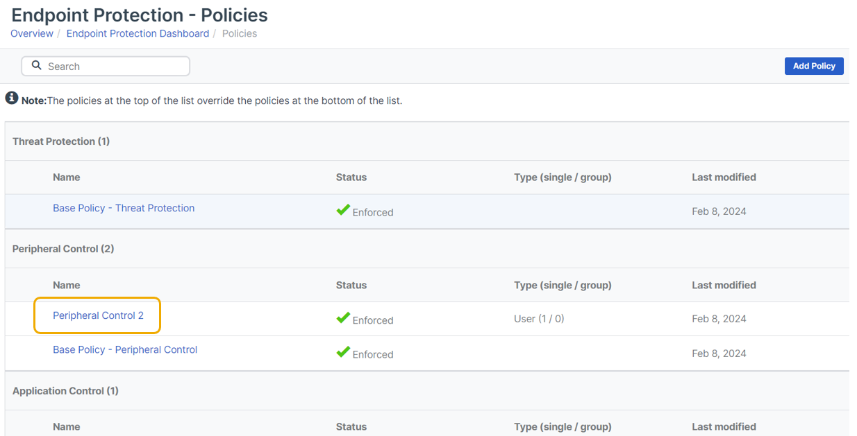 ポリシーの順序を確認します。各セクションのポリシーは、「ポリシー」ページに表示されている順序で適用されます。