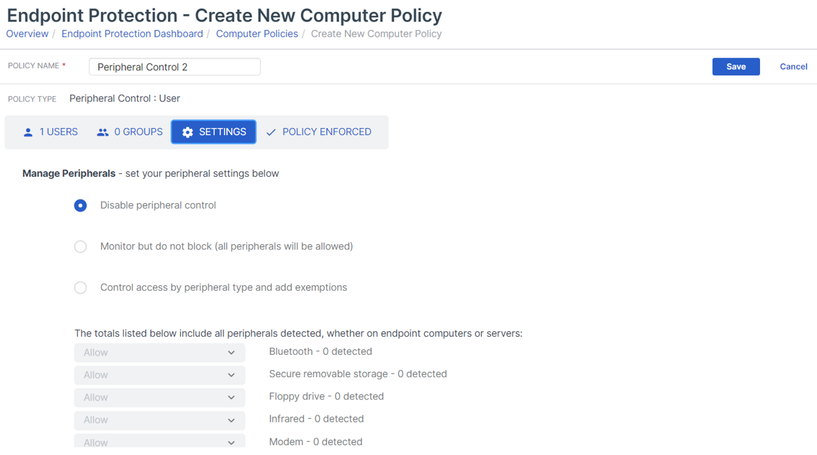 エンドポイントコンピュータとサーバーには、異なるポリシーがあります。