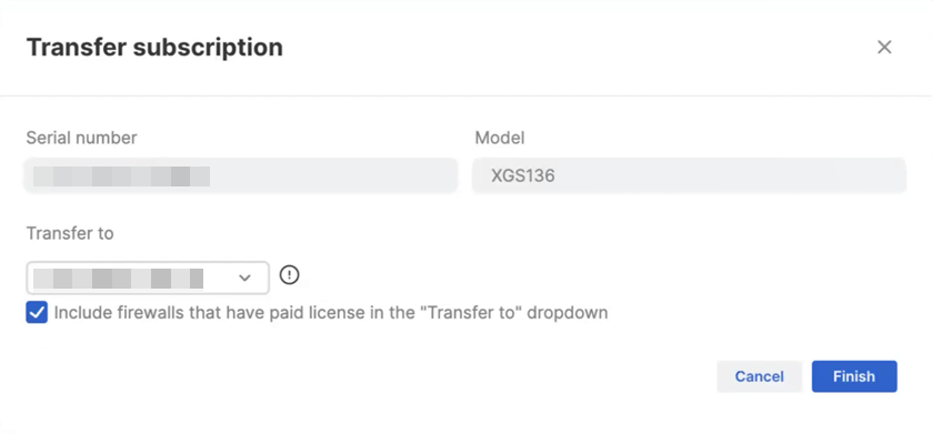 5. (任意) ドロップダウンリストで、既に有償ライセンスを持つファイアウォールを表示できるボックスをオンにします。