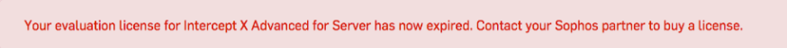 <製品名> の評価ライセンスの有効期限が切れました。ライセンスの購入についてソフォスパートナーにお問い合わせください。