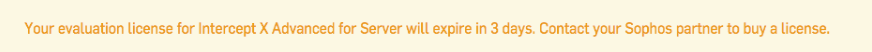 <製品名> の評価ライセンスは、あと 3日で有効期限が終了します。ライセンスの購入についてソフォスパートナーにお問い合わせください。