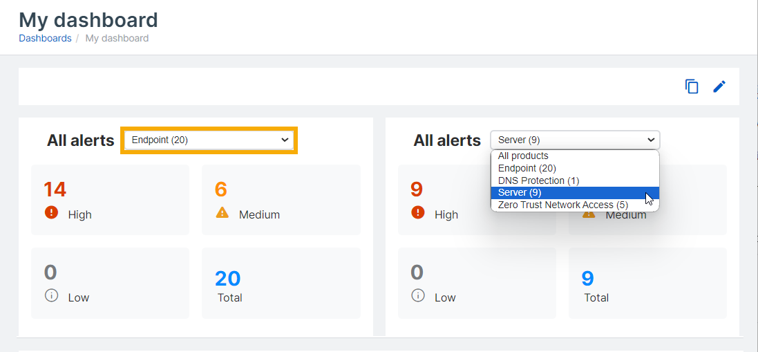 ウィジェットがデータを取得する製品を選択します。たとえば、Endpoint や XDR などです。