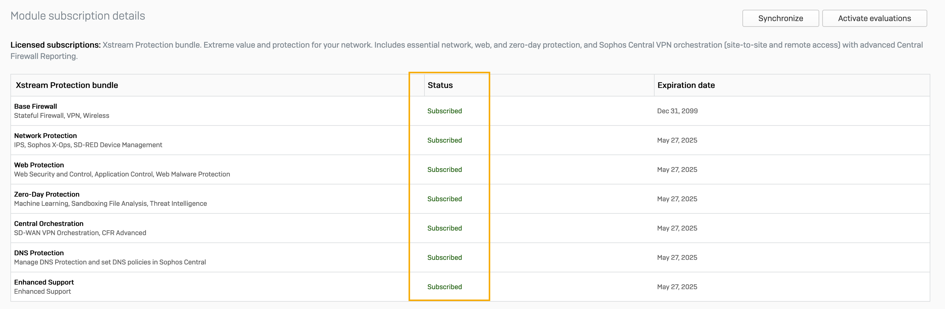 サブスクリプションが Sophos Firewall と同期していることを確認する