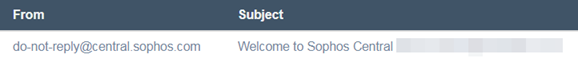 メールは、「Welcome to Sophos Central <名 姓>」の件名で、「do-not-reply@central.sophos.com」から送信されます。