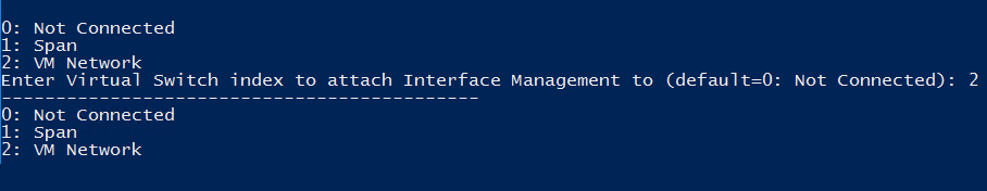 スクリプトは、現在使用している vSwitch すべての番号付きリストを表示します。