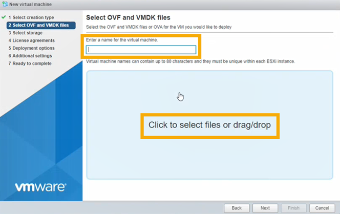 「OVF ファイルと VMDK ファイルの選択」で、以下の手順に従います。