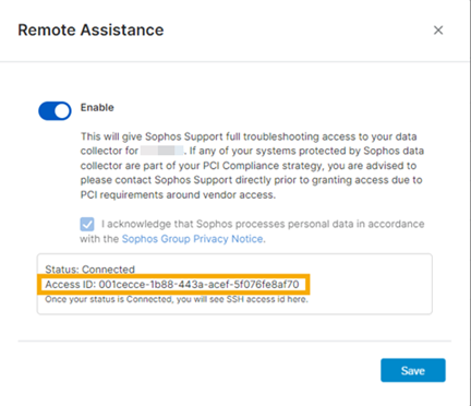 アクセス ID をコピーして、ソフォスサポートに送信します。アプライアンスにアクセスするために使用されます。