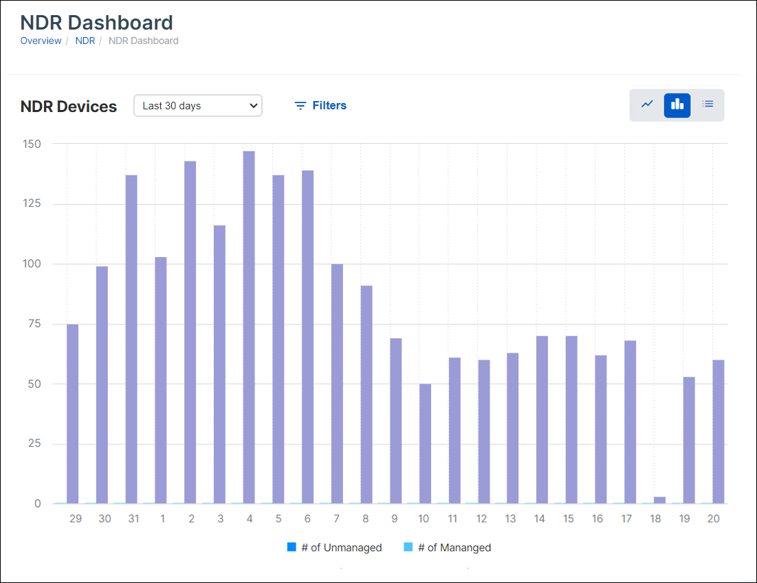 - NDR デバイス: 管理対象デバイスと管理対象外デバイスの数を表示します。
