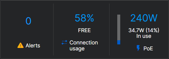 - PoE:接続されている PoE デバイスに供給されている電力の合計およびスイッチが提供している電力量を表示します。