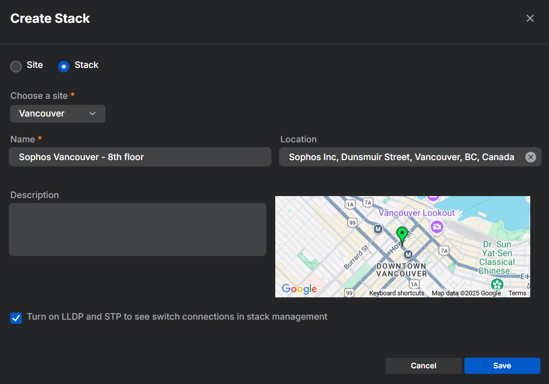 スタックにスイッチを追加する場合は、物理的に接続されているか、同一の設定を持つ場合のみ追加することをお勧めします。それ以外の場合は、サイトを作成してください。