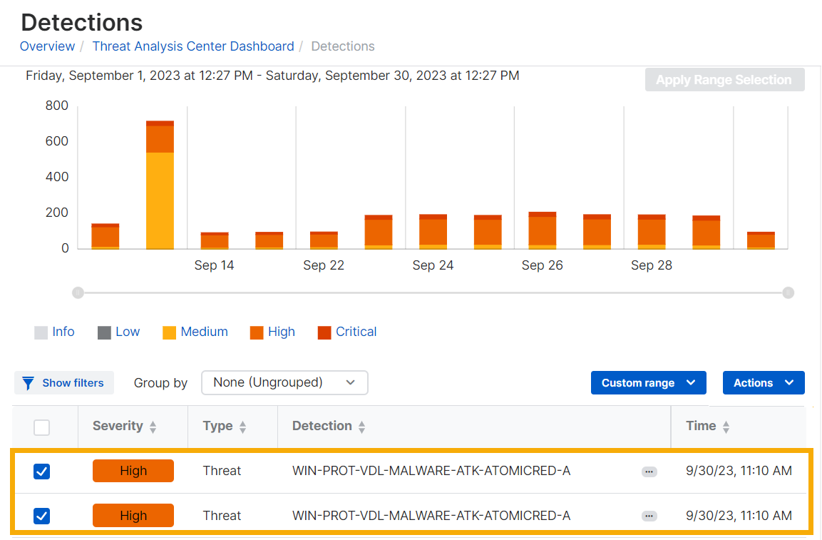 検出リストの上にあるメニューを使用して、異なる期間またはカスタム範囲を設定することもできます。