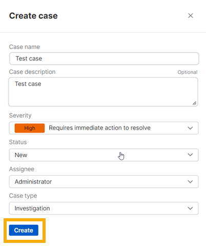 新しいケースを作成し、そのケースに検出を追加するには、次の手順を実行します。