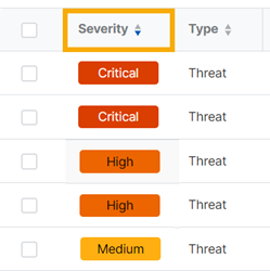 • 種類。検出の種類。現在、表示される種類は「脅威」または「脆弱性」です。