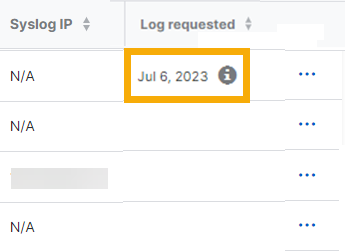 「ログのリクエスト済み」列で、情報アイコンの上にカーソルを置くと、ツールチップにログファイル名が表示されます。