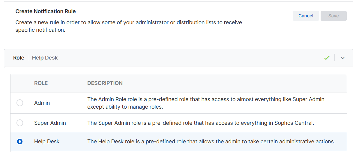 2. 製品で設定」で、Sophos Central を選択したままにします。他の製品からの警告に関するメール通知を同じ管理者に受信させる場合を除き、他のオプションの選択を解除します。