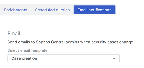 「メール通知 」タブで、「ケース作成」テンプレートを選択します。