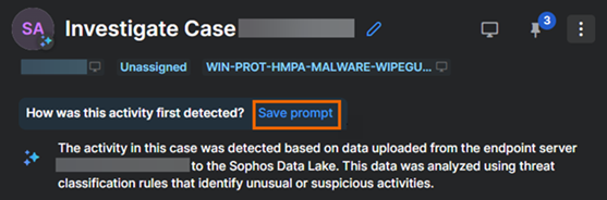 프롬프트 목록은 최근에 사용한 프롬프트와 저장된 프롬프트, 그리고 Sophos에서 제공하는 사전 정의된 ('정형화된') 프롬프트를 포함한 추천 프롬프트 목록입니다.