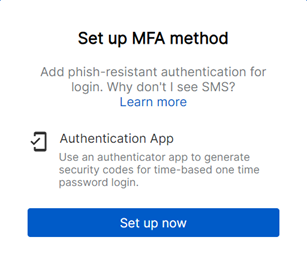 Na segunda vez que você entrar em sua conta, será solicitado que você configure a autenticação multifator (MFA).