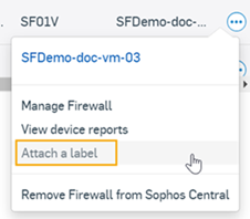 Clique nos três pontos ao lado do seu firewall e clique em Anexar um rótulo.
