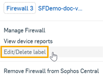 Para editar ou deletar o rótulo do firewall, clique nos três pontos ao lado do firewall e clique em Editar/Deletar rótulo.