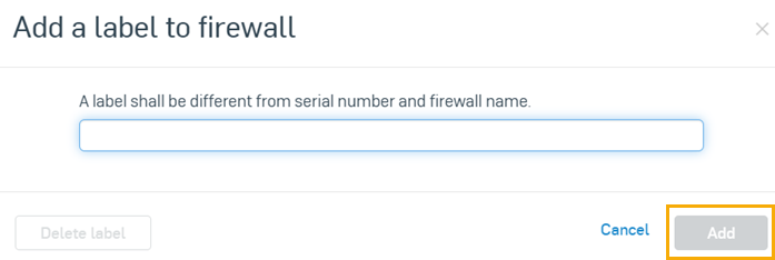 É apresentada uma janela pop-up. Digite um nome para o rótulo do firewall na caixa de diálogo e clique em Adicionar.