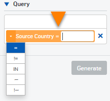 Para adicionar um filtro da tabela, clique em um valor sob a coluna que você deseja filtrar. A coluna e seu valor aparecem em Consulta. Você pode selecionar vários pares de coluna-valor. Clique em Gerar para gerar o relatório.