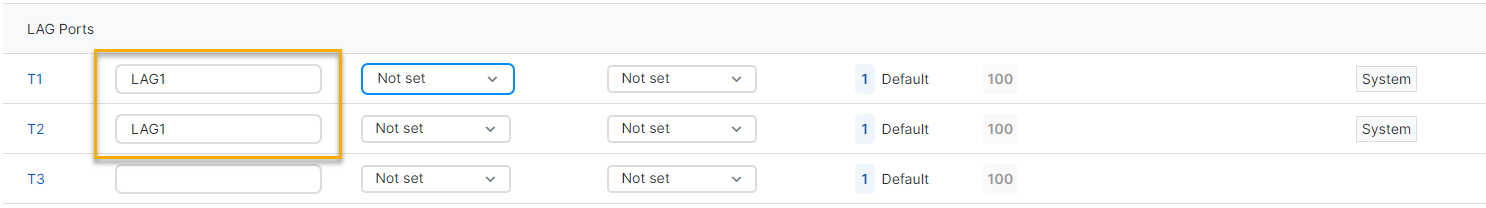 Role para baixo até a seção Portas LAG e clique na porta LAG que deseja editar.