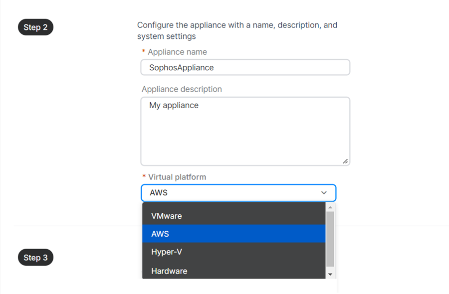 - Registre-se no "Sophos Integration Appliance" na AWS.