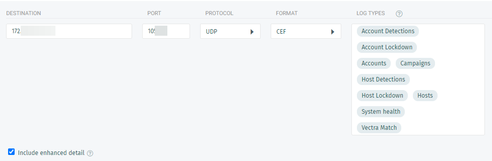 Ao configurar a Vectra AI para enviar dados ao seu dispositivo, você deve se certificar de que está usando o mesmo protocolo.