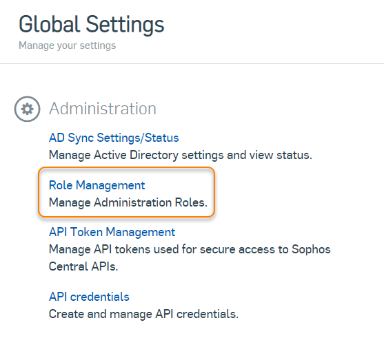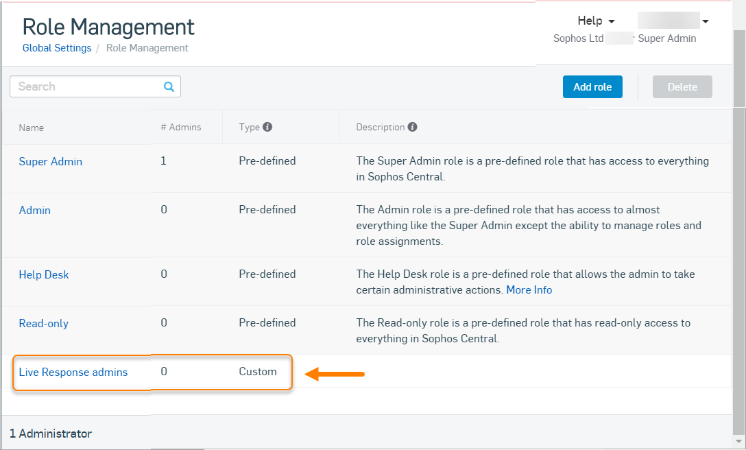 Se você for um provedor de serviços gerenciados que gerencia a conta de um cliente a partir do Sophos Central Partner, não poderá criar essa função, no momento.