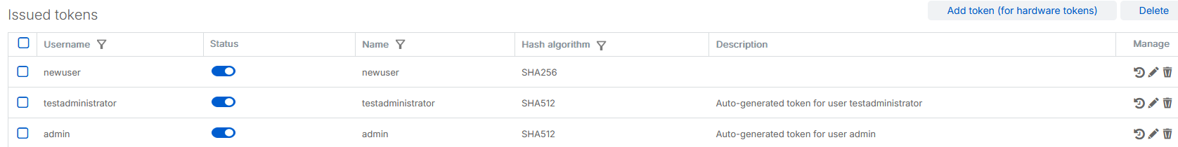 - Under Issued tokens, delete these users. The firewall will generate the QR code again.