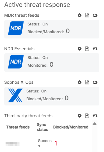 - MDR threat feeds: Shows the status and the number of blocked threats using MDR threat feeds.