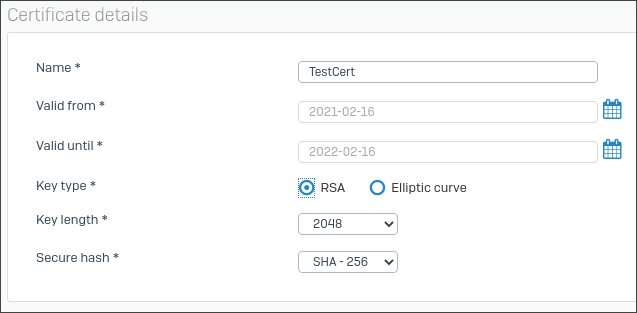 Authentication type Digital certificateLocal certificate Appliance certificateRemote certificate TestCertSelect a locally-signed certificate. Alternatively, select a certificate you've uploaded to Certificates > Certificates.