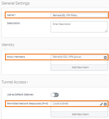 When SSL VPN clients connect to Sophos Firewall, it assigns IP addresses from the subnet you specify here. You must use a private address.