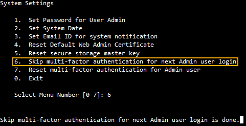 If you have multi-factor authentication (MFA) for the default administrator, you can skip MFA the next time the administrator signs in to the web admin console. You can use this if the MFA device isn't available.