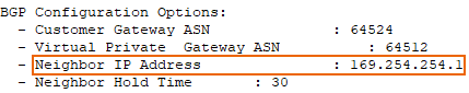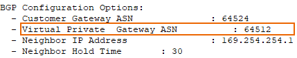 Remote AS Enter the Virtual Private Gateway ASN, which you can find in the downloaded AWS VPN connection configuration file.