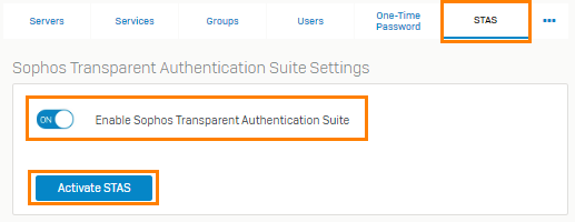Turn on Enable Sophos Transparent Authentication Suite and click Activate STAS.