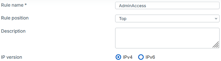 7. For Source network/host, create and select the administrator's IP host, for example, APIAdminHost.