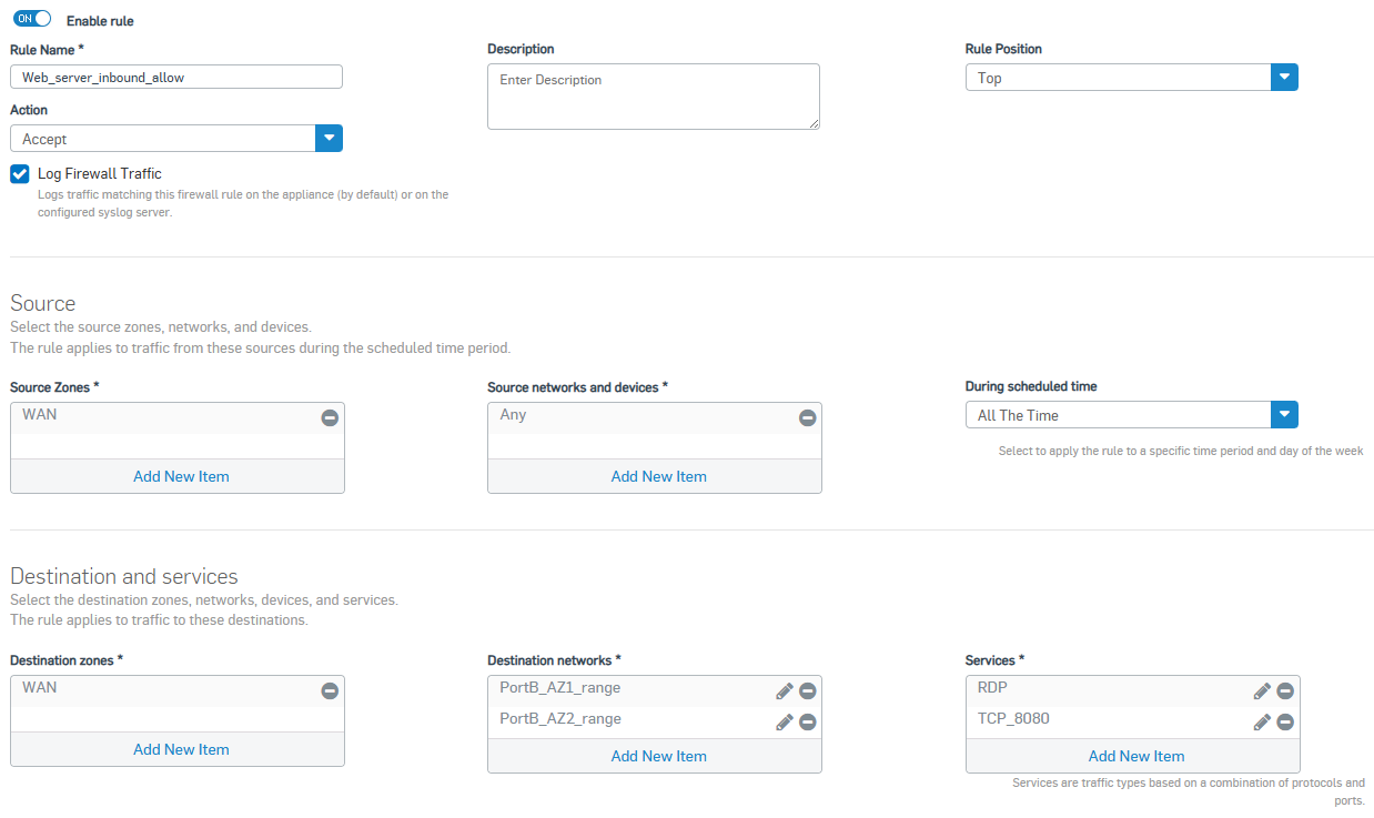 - Translated Destination (DNAT): The RDP server host you created.