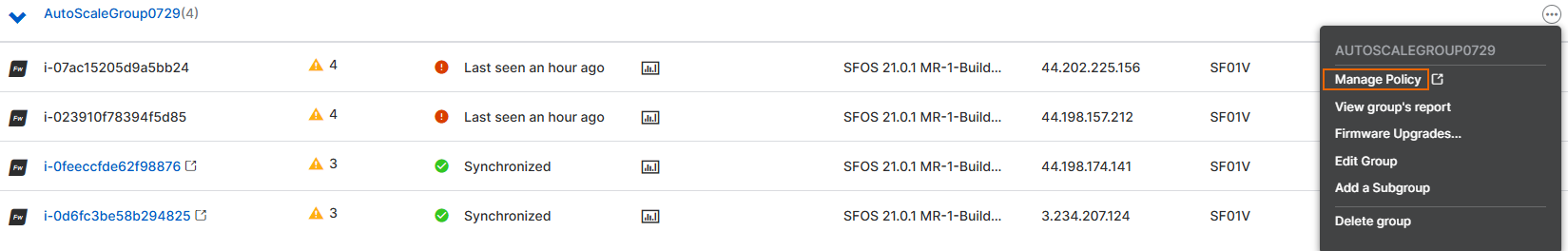 - Go to Auto scaling > Auto scaling groups and click the Auto Scaling group created for the firewall EC2 instance.