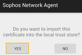 Sophos Network Agent を開き、ユーザーポータルからダウンロードした CA 証明書をインポートして、「はい」をクリックします。