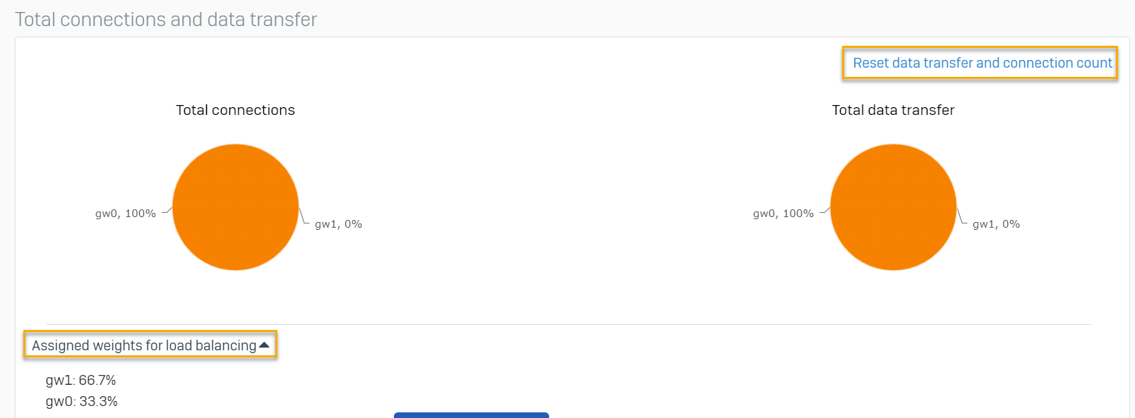 - 「負荷分散のために割り当てられた加重」をクリックして、各ゲートウェイに割り当てられた負荷分散の加重を表示します。