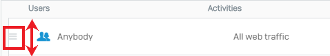 たとえば、すべてのトラフィックを許可するルールが特定の種類のトラフィックをブロックするルールよりも上に配置されている場合、すべてのトラフィックを許可するルールが有効なルールとなります。たとえば、すべてのトラフィックを許可するルールが特定の種類のトラフィックをブロックするルールよりも上に配置されている場合、すべてのトラフィックを許可するルールが有効なルールとなります。