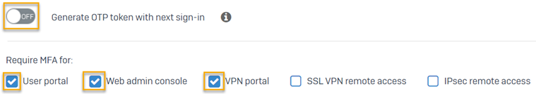 Don't turn on Generate OTP token with next sign-in.