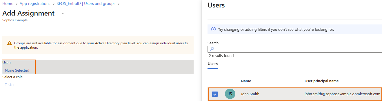 4. Under Users, click None selected, then select the users or groups.