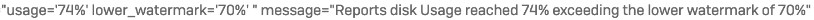 レポートのディスク使用率が上限 (低) または上限 (高) に達すると、通知されます。