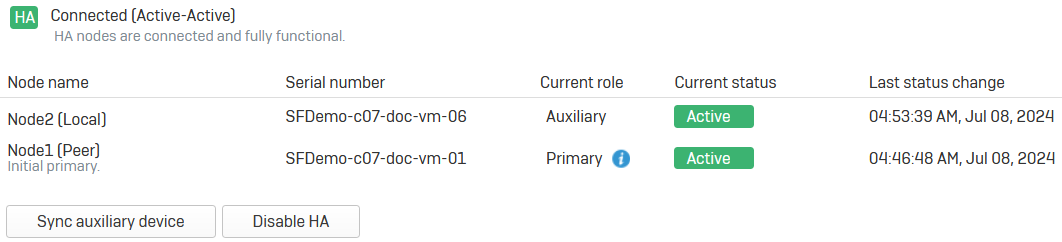 Auxiliary device configuration has been applied successfully. You can now enable HA from primary device.