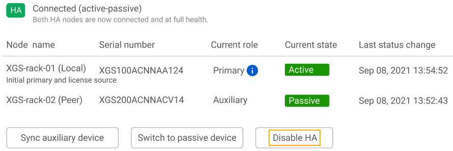HA を無効化する場合は、プライマリデバイスから行うことをお勧めします。両方のデバイスで HA を無効化します。
